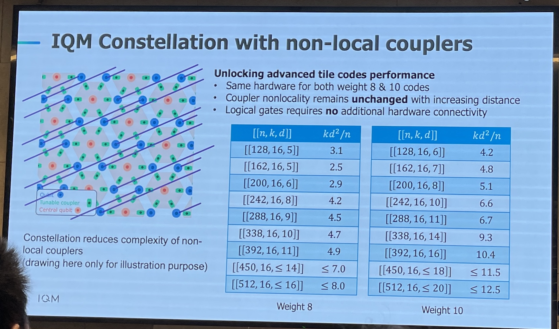 ▲ 預計在APS 2026,IQM會發表在Constellation上加入遠程耦合的位元交互作用。是為了對應到qLDPC的發展。