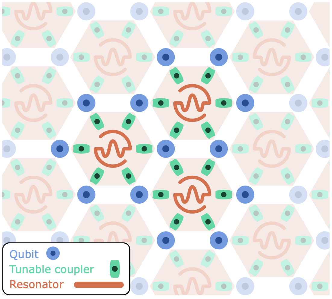 ▲ 6個Qubit環繞一個可計算諧振器構成一個六角形Star模組,透過六角形排列構成IQM Constellation架構,實現可擴展性,每個Qubit的連接性是12,較過往正方形連接性為4大幅提升。